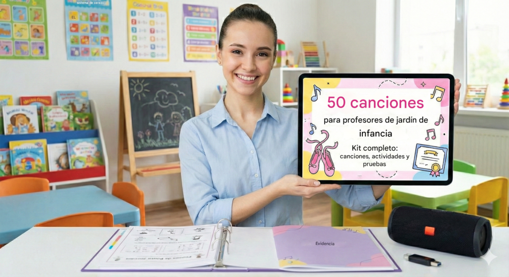 El primer kit completo con más de 50 canciones, 100 actividades dinámicas, tarjetas pedagógicas y evaluaciones listas, creadas especialmente para el universo infantil.